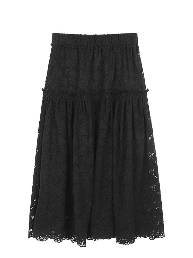 [EWQ] 弾性ウエストレーススカート夏フックフラワールーズミッドカーフスカート 6Y9537 エラスティック 伸縮 サマー 夏物 フラワーデザイン