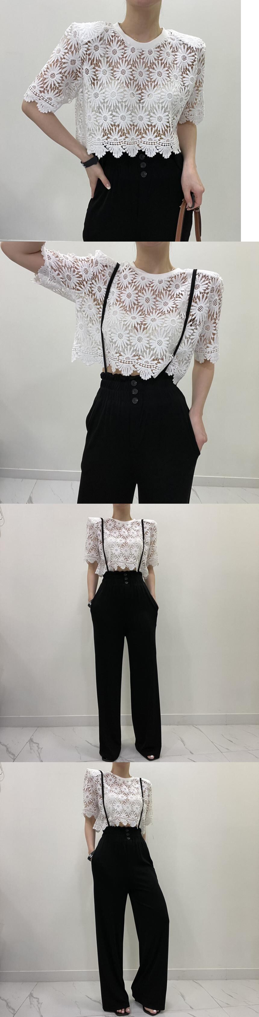 [EWQ] 刺繍フックフラワーシャツ半袖カジュアル無地ブラウストップ夏潮トップス 16Y8403 ショート ハーフスリーブ サマー 夏物 ソリッドカラー フラワーデザイン