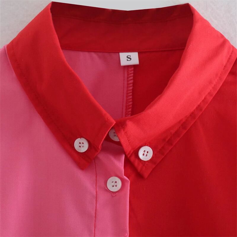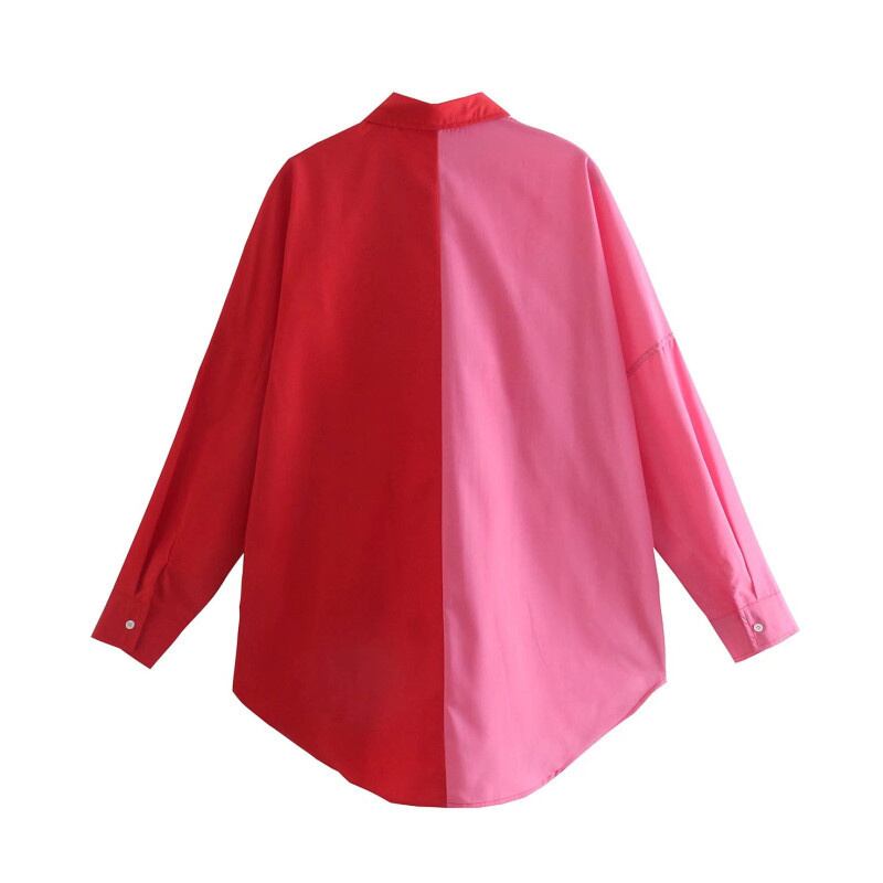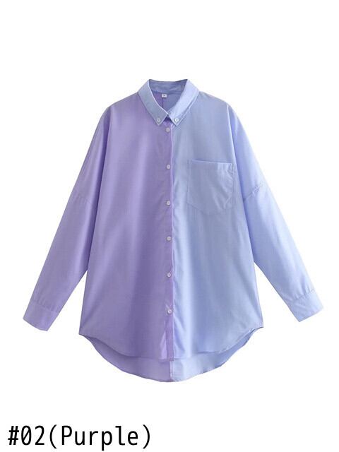 [EWQ] パッチワーク長袖ルーズシャツ サマーシングルブレストシャツ トップス 16R3082 ロング 夏物