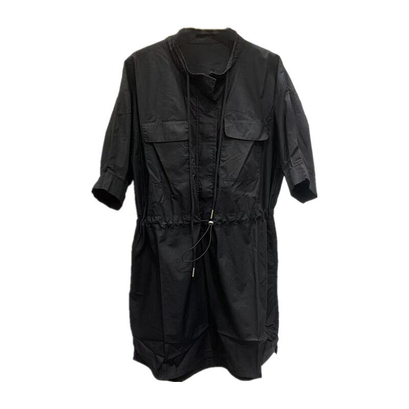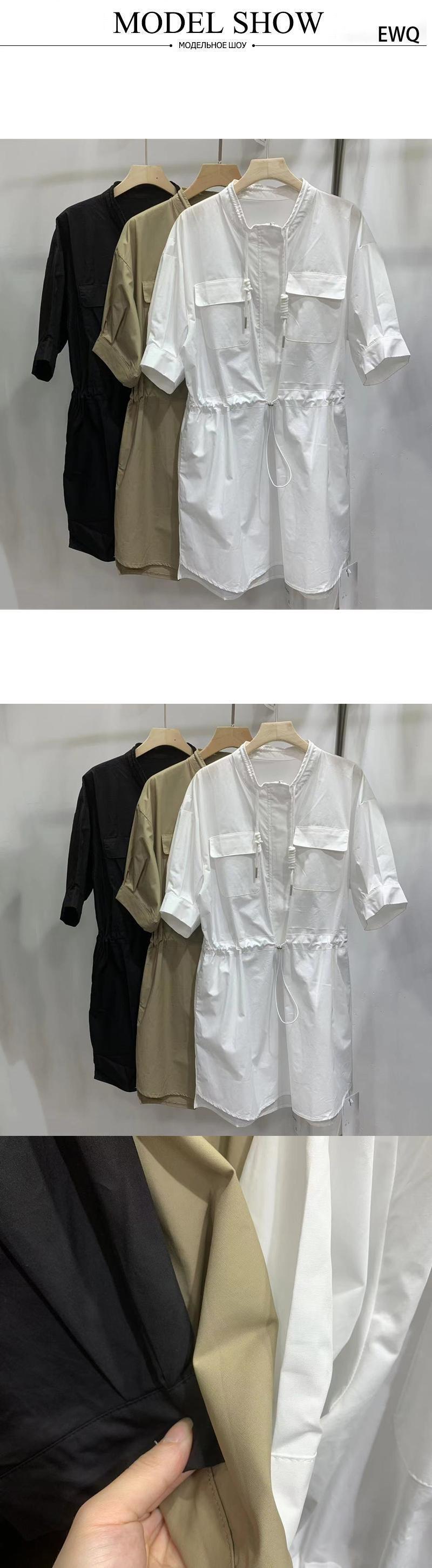 [EWQ] ハーフジッパー巾着ドレスソリッドカラースタンドネック半袖シャツドレス夏潮 Vestido Y9400 ショート ハーフスリーブ サマー 夏物