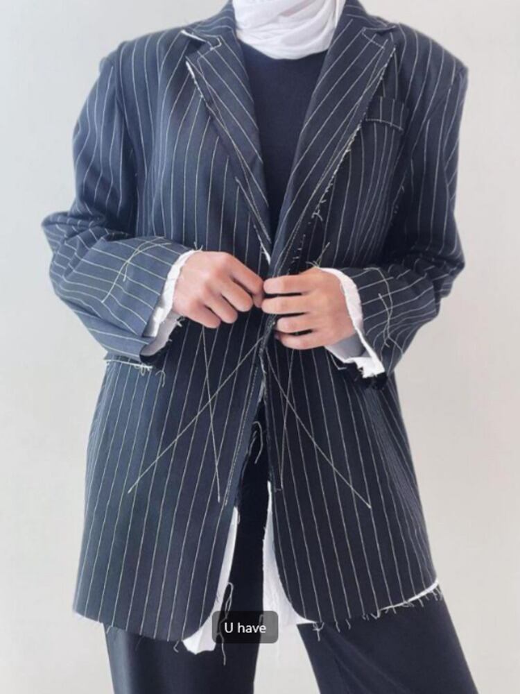 [EWQ] ストリートトップスエッジコートストライプツイードスーツ春秋オーバーサイズ長袖オフィスレディブレザーコート ロング スプリング 春物 オータム 秋物 会社 学校 通勤や通学にも