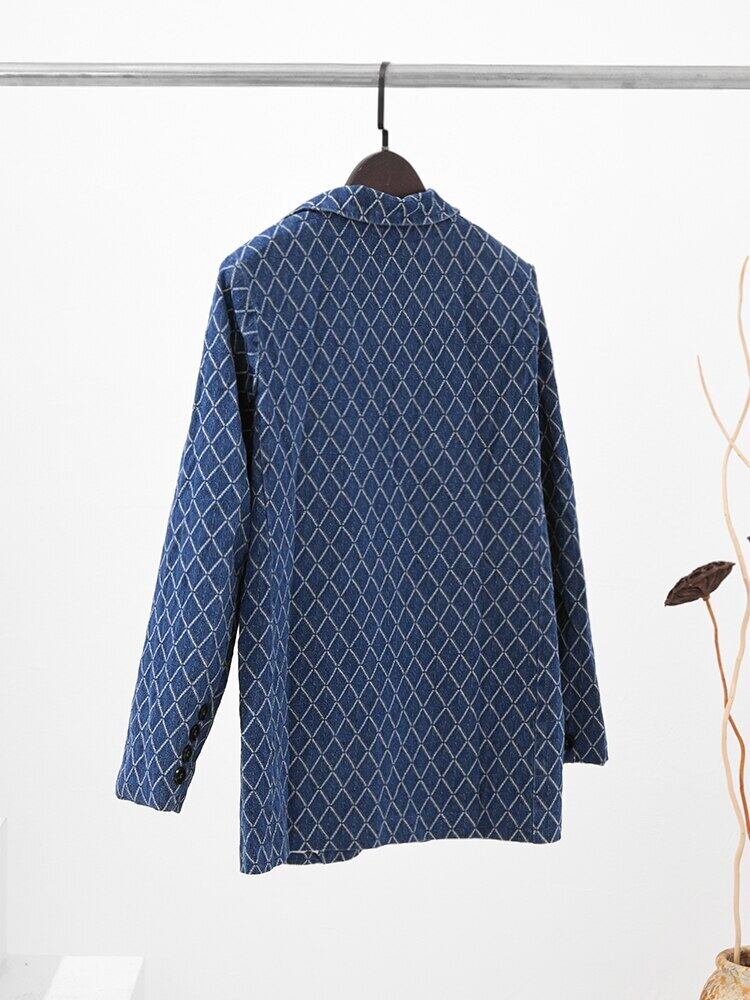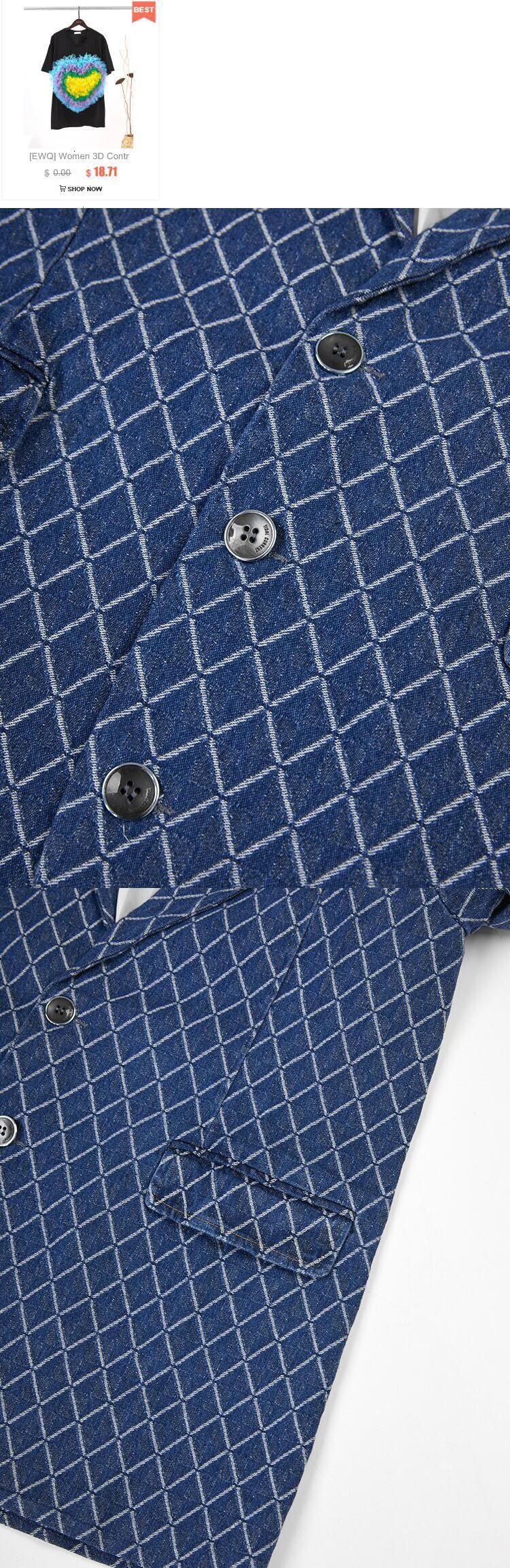 [EWQ] コントラストチェック柄スーツジャケット長袖ポケットシングルブレストブレザーコート春潮ブルーブレザー ロング スプリング 春物