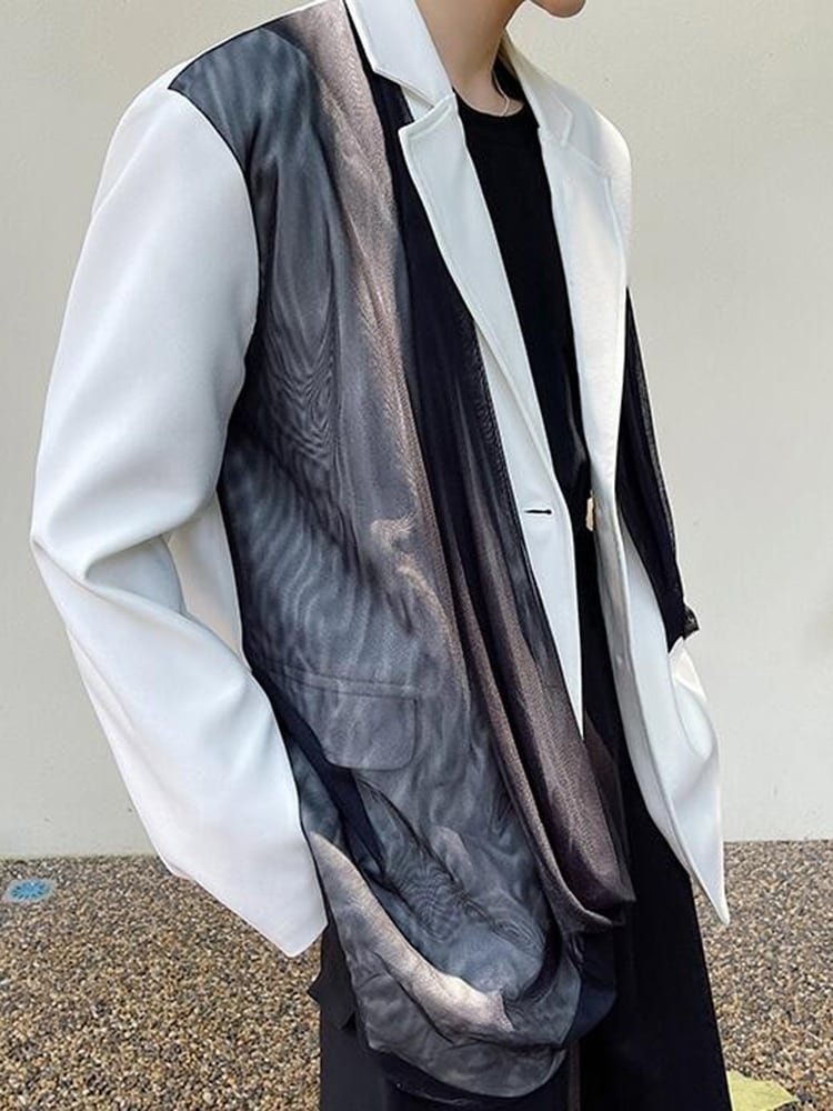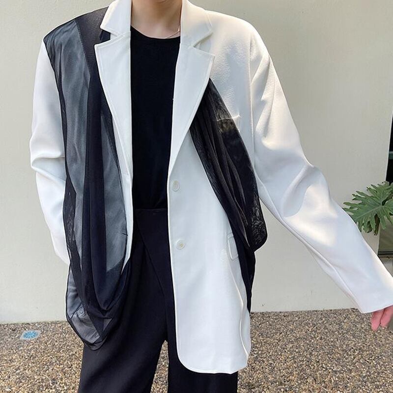 [EWQ] ブレザー春潮非対称メッシュパッチワークスーツジャケット長袖コントラストカラーブレザー Y8941 ロング スプリング 春物