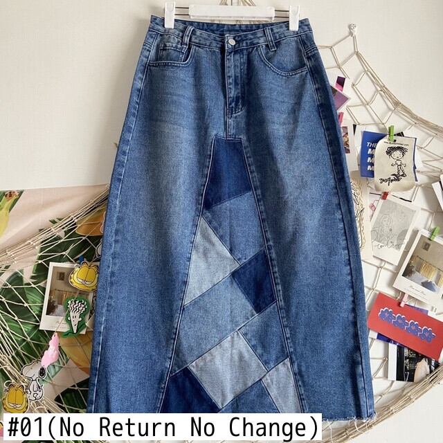 [EWQ] ストリートデニムスカートポケットパッチワークコントラストカラー A ラインスカート夏潮オールマッチ服 サマー 夏物 Aライン