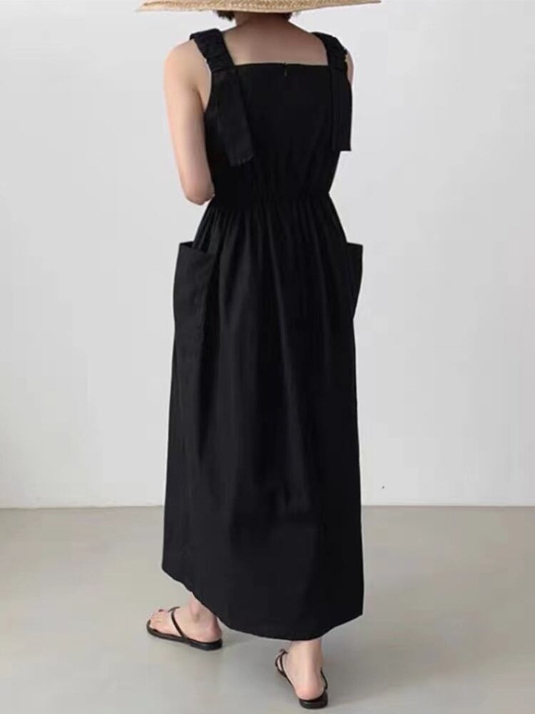 [EWQ] 弾性ウエストポケットベストドレスシンプルソリッドカラーカジュアルノースリーブドレス夏潮 Vestido 430 エラスティック 伸縮 サマー 夏物