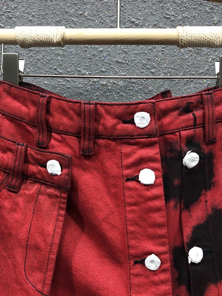 [EWQ] タイダイ不規則デニムスカートシングルブレストボタンパッチワークストリートウエストミニスカート夏 サマー 夏物