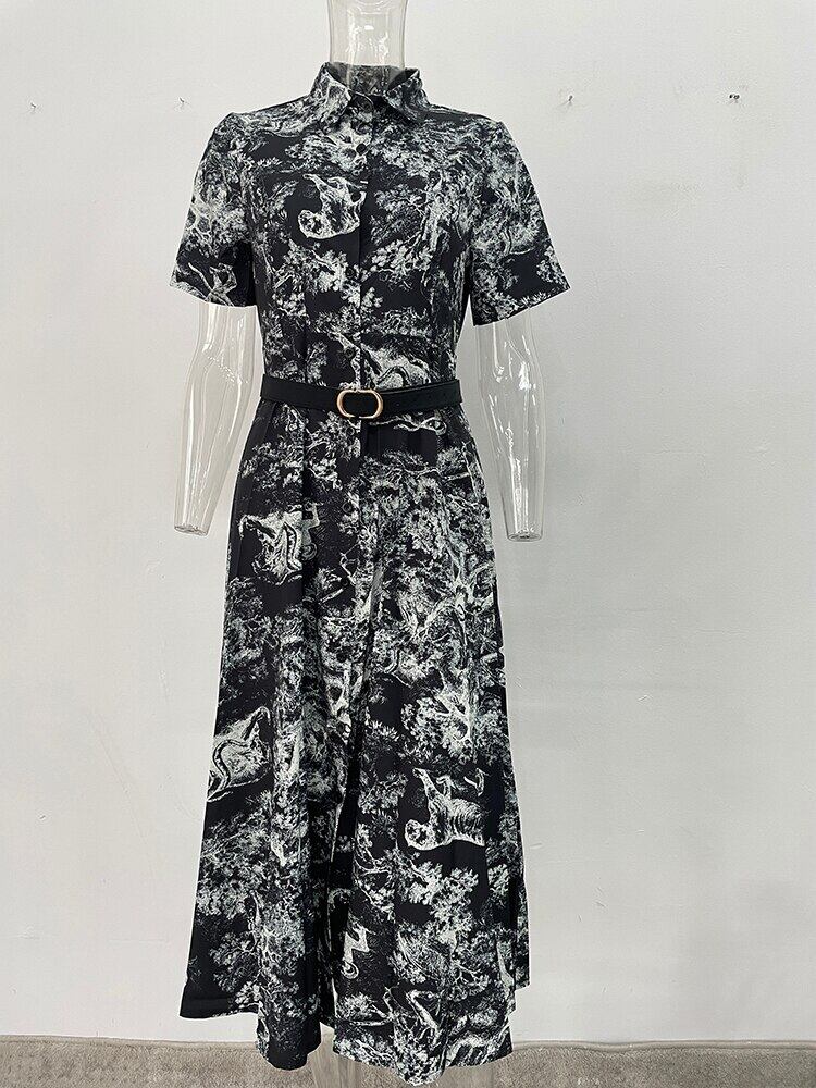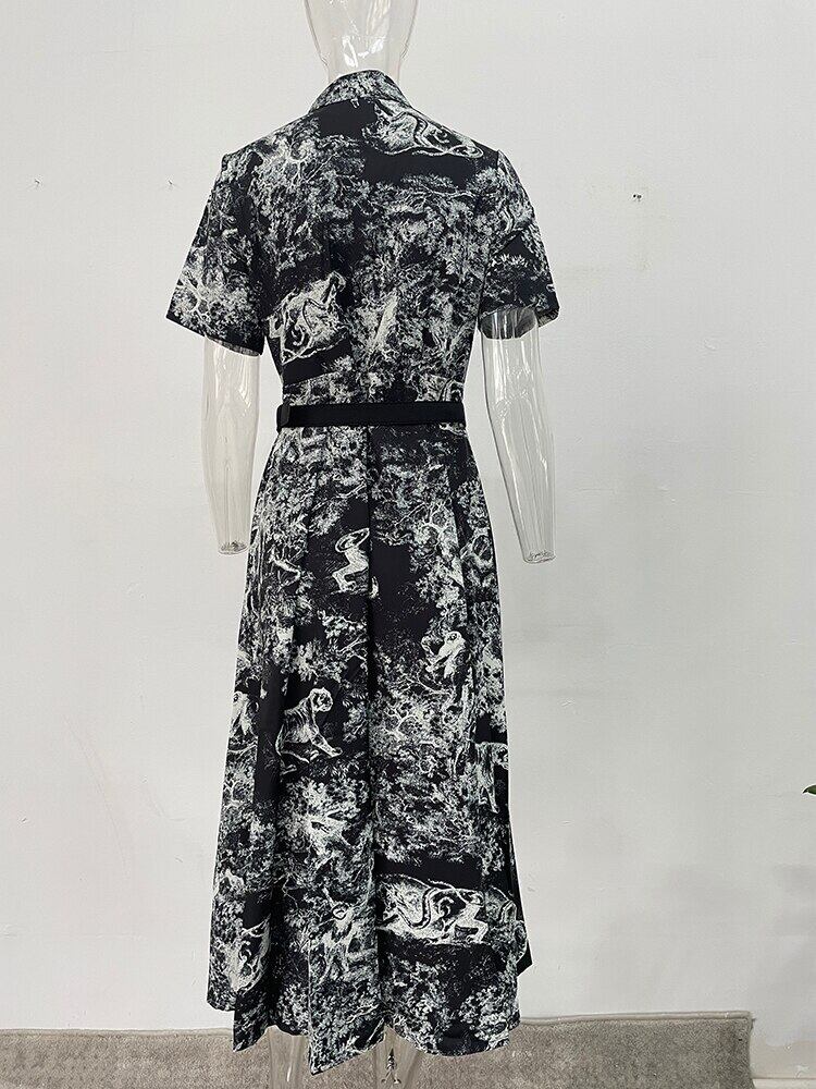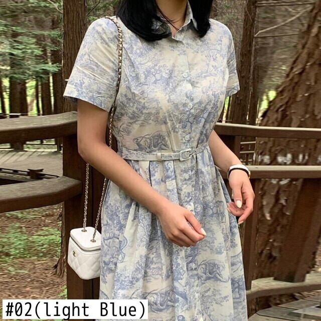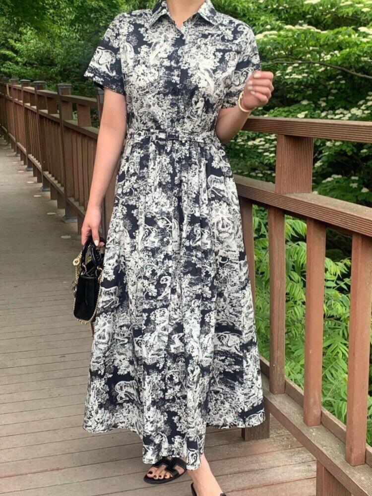 [EWQ] プリントレースアップドレス半袖コントラストカラードレス夏潮気質 Vestido ショート ハーフスリーブ サマー 夏物