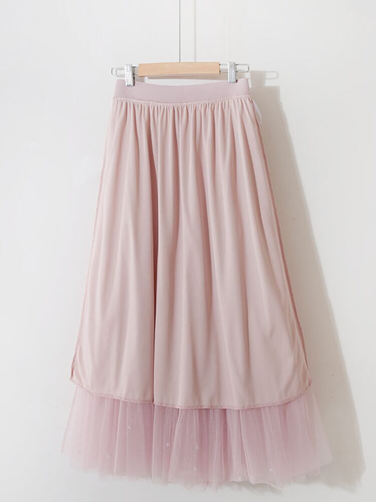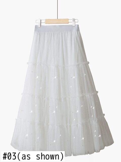 [EWQ] レーススプライシングメッシュスカート甘い不規則ウエストミッドカーフスカート夏潮オールマッチ服 634 大人ガーリー スウィート キュート カジュアル サマー 夏物