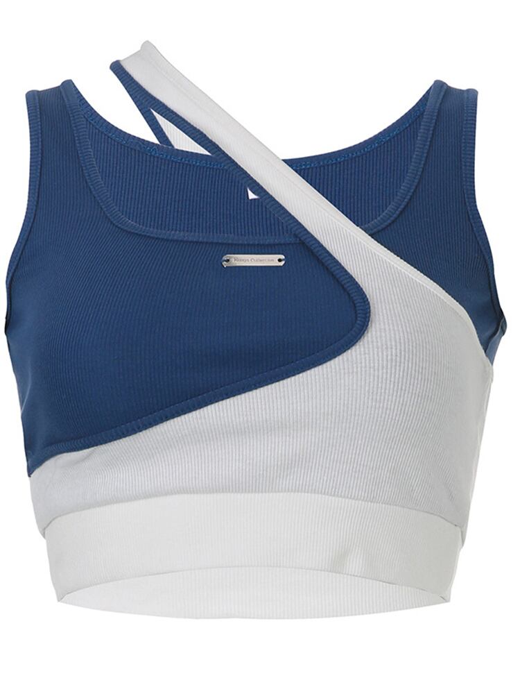 [EWQ] フェイクツーピースコントラストタンクトップ金属装飾パッチワークキャミソール夏潮ホルターセクシートップ 9017 サマー 夏物