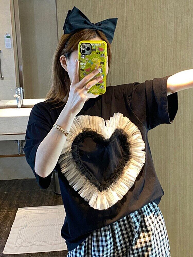 [EWQ] メッシュスプライス愛黒 Tシャツ O ネックルーズカジュアル半袖 Tシャツトップ夏潮 T シャツ 6Y9129 ショート ブラック ハーフスリーブ サマー 夏物 Oネック