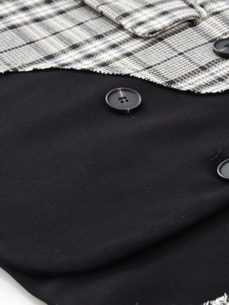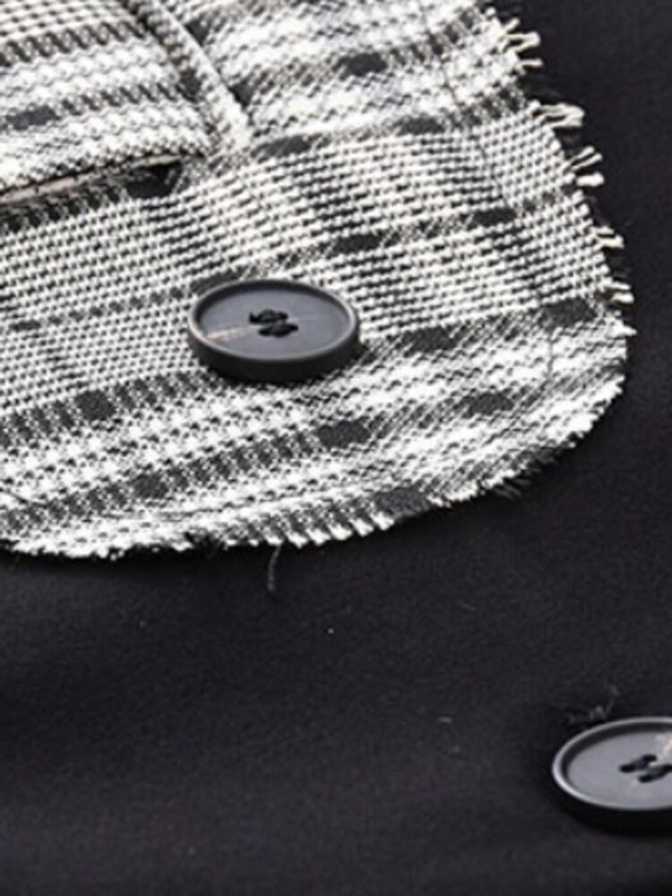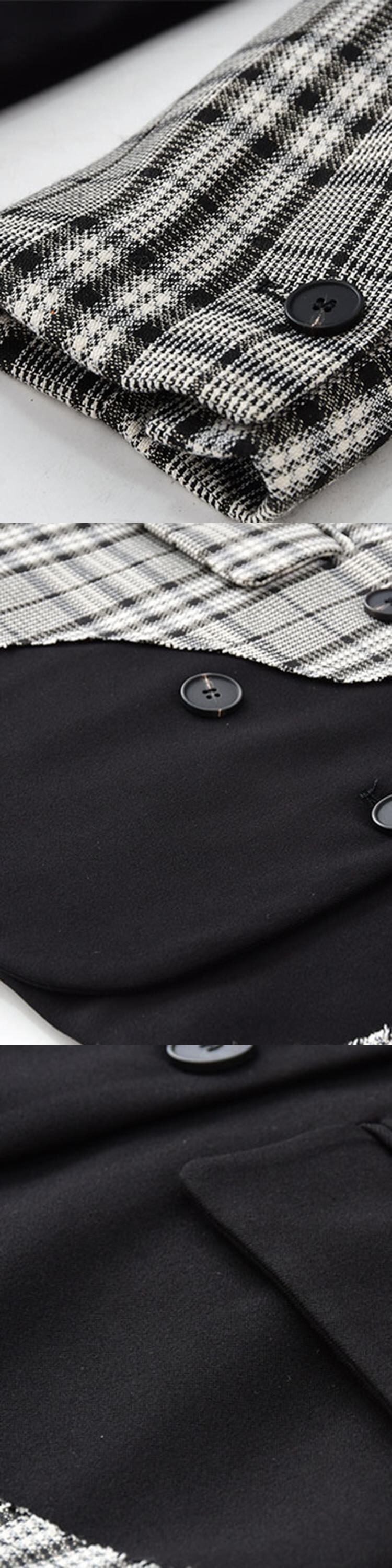 [EWQ] チェック柄パッチワークブレザーコート長袖コントラストダブルブレストスーツジャケット春秋潮トップ ロング スプリング 春物 オータム 秋物