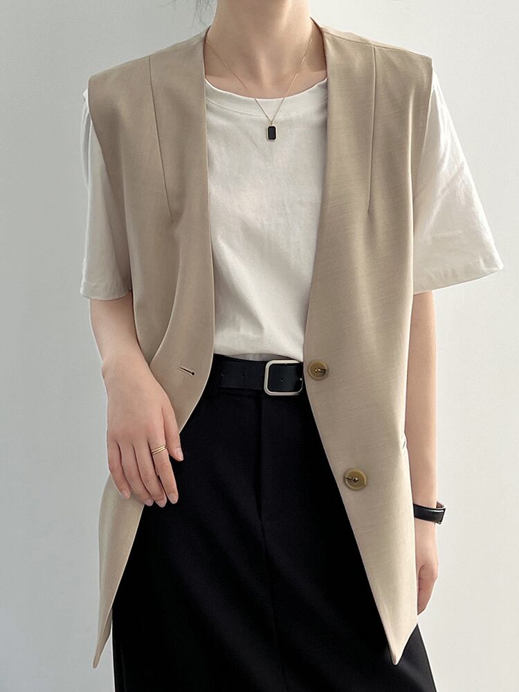[EWQ] ノースリーブ スーツ ベスト レディース 夏潮折りショルダー タンク トップ ジャケット ルーズ 2 ボタン トップ 6Y9406 サマー 夏物