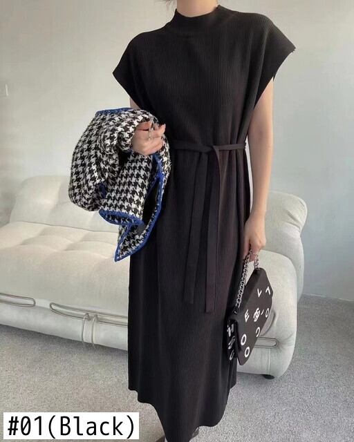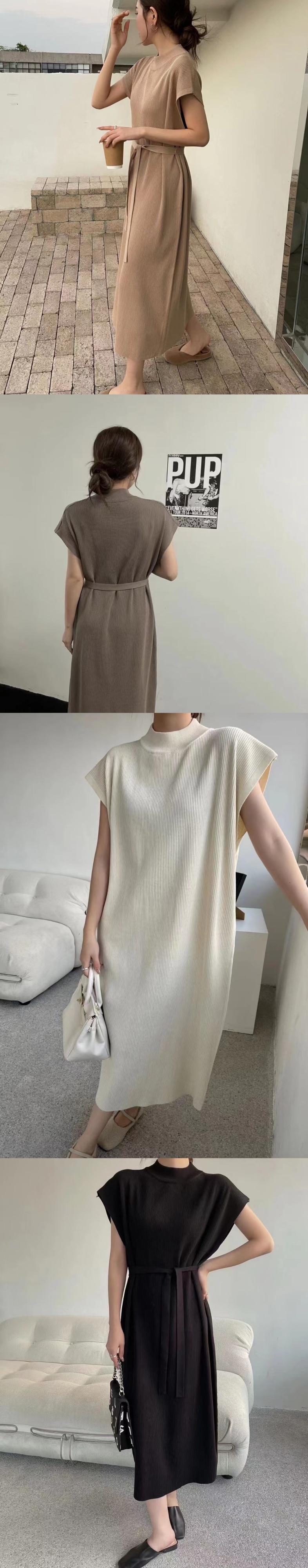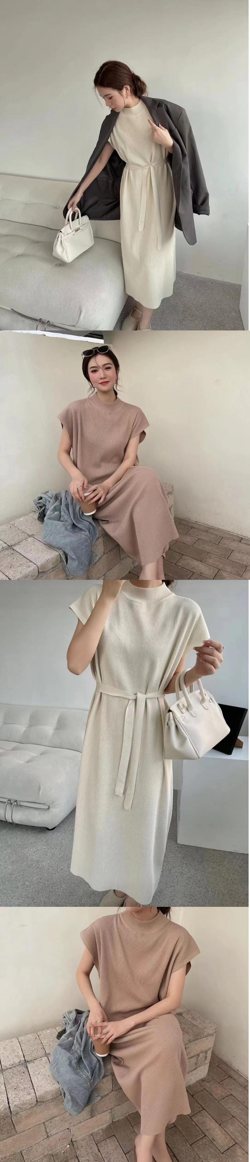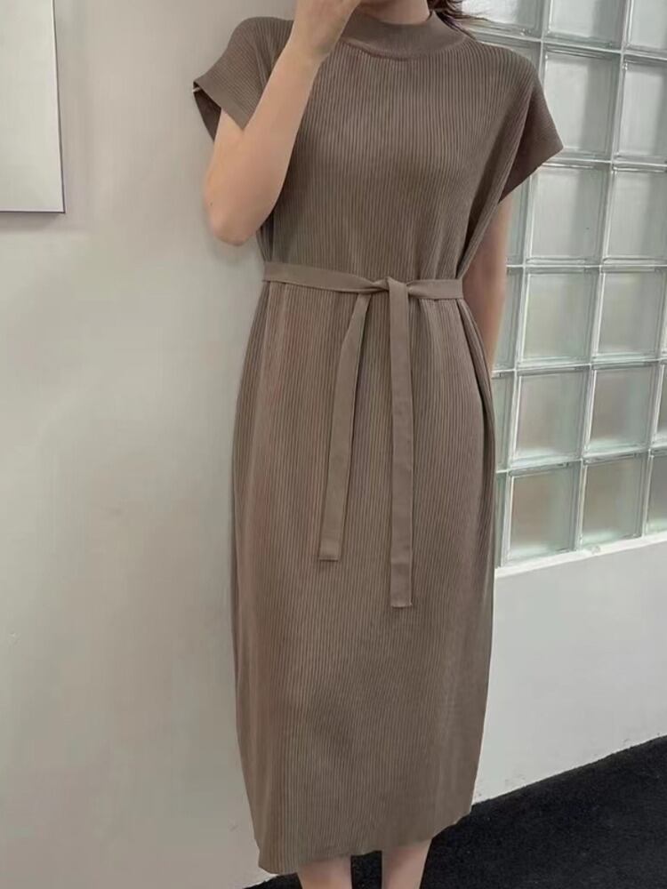 [EWQ] 有能ニットドレス半袖ソリッドカラーハーフネックレースアップドレス夏潮 Vestido 9334 ショート ハーフスリーブ サマー 夏物