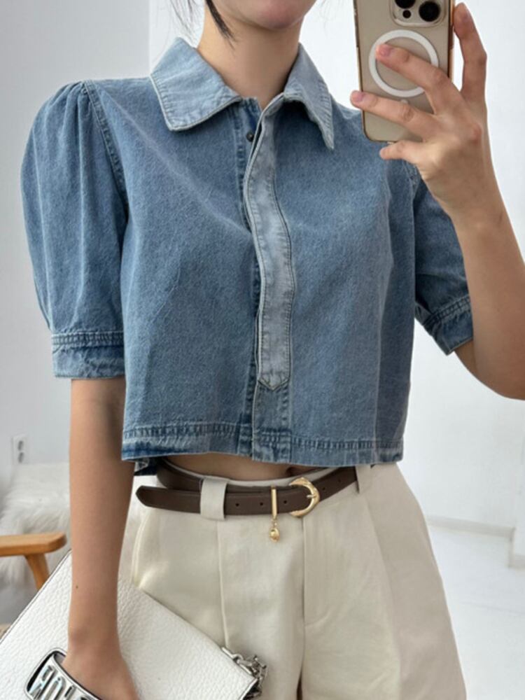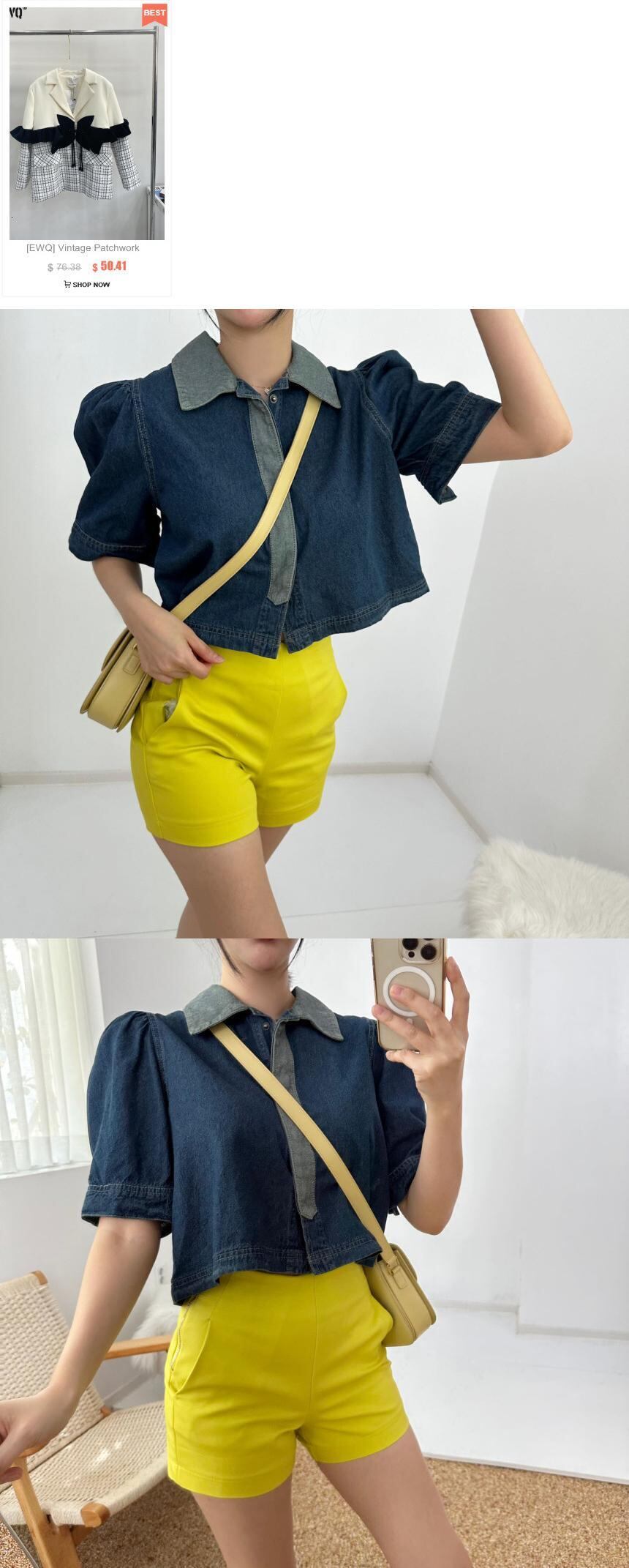 [EWQ] シングルブレストデニムジャケットパフスリーブストリートルーズショートジャケットコート夏潮トップ サマー 夏物