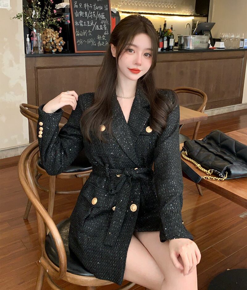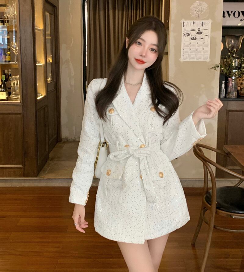 [EWQ] 美しい長袖アプリコットスーツドレス気質スリムフィット秋美しいドレス 16Y98 ロング オータム 秋物