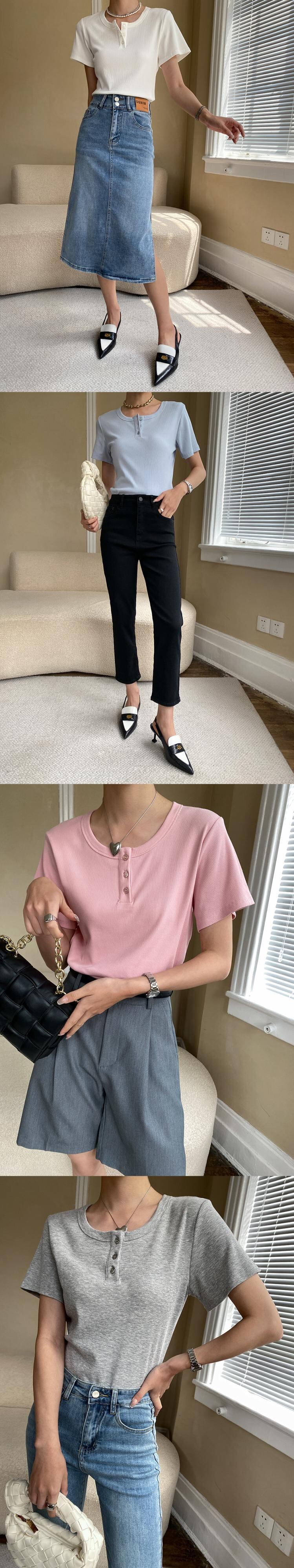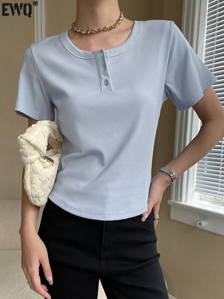 [EWQ] 3 ボタン スリム フィット Tシャツ ピンク半袖 Tシャツ トップ夏潮因果 T シャツ 16Y9061 ショート ハーフスリーブ サマー 夏物