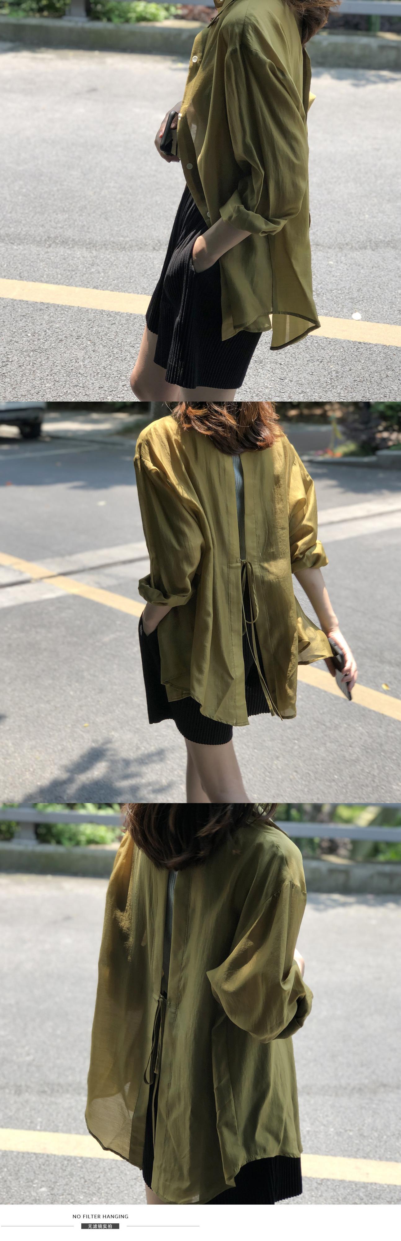 [EWQ] バックスプリットレースアップ薄手シャツ長袖夏服潮シングルブレストトップス 16Y9403 ロング サマー 夏物