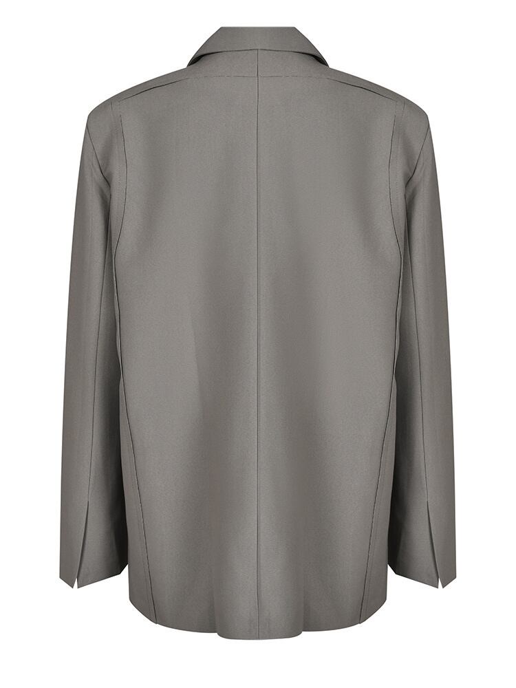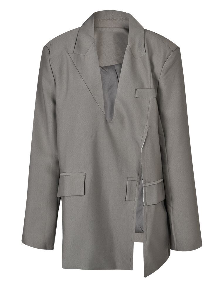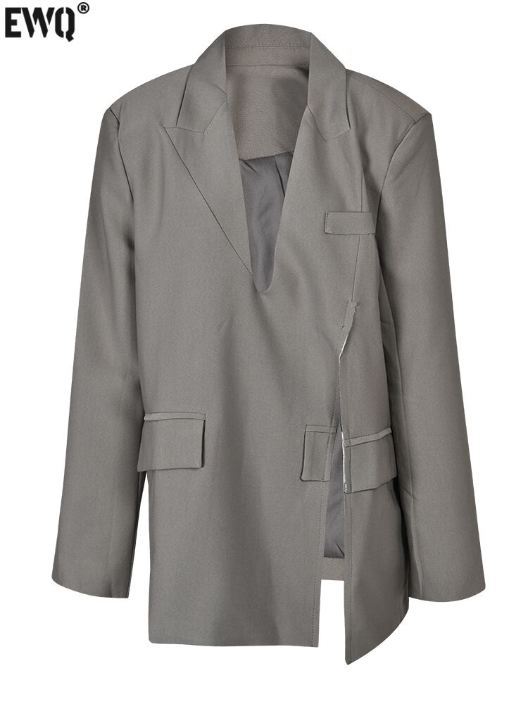 [EWQ] 不規則バーブレザービッグサイズ V ネック長袖ルーズジャケット秋オフィスコート ロング オータム 秋物 Vネック 会社 学校 通勤や通学にも