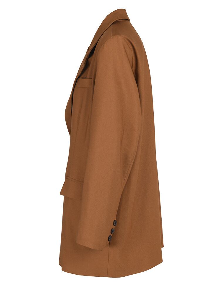 [EWQ] キャラメルカラーブレザー レディース 大きいサイズ ラペル 長袖 ルーズフィット ジャケット 潮 春 秋 1DF7766 ロング スプリング 春物 オータム 秋物