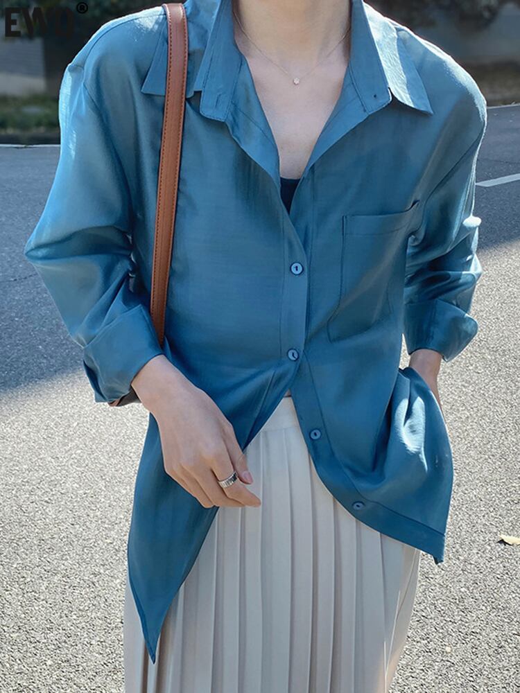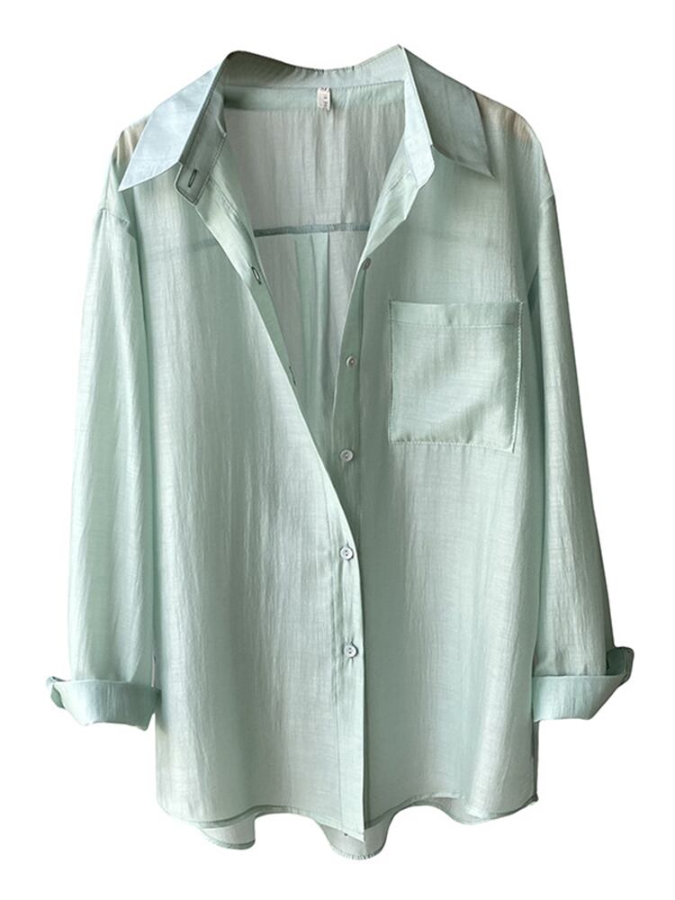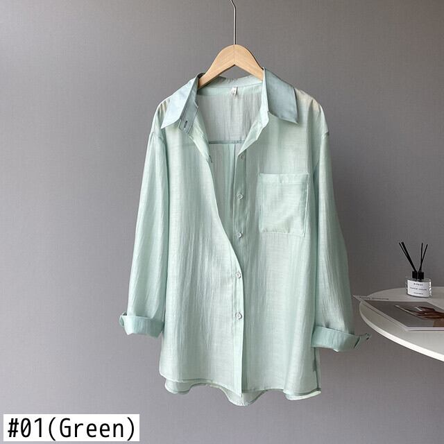 [EWQ] レディース ルーズ パースペクティブ シャツ 薄手 長袖 グリーン シングルブレスト カジュアル アウター 夏潮 ロング サマー 夏物