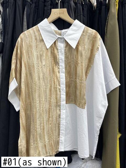 [EWQ] 不規則パッチワークシャツコントラストシングルブレストルーズカジュアル半袖夏潮トップ ショート ハーフスリーブ サマー 夏物