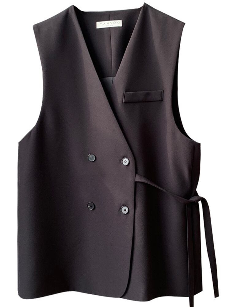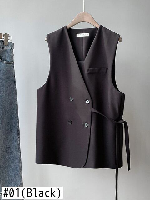 [EWQ] スーツベスト夏潮ルーズ V ネック包帯ダブルブレストノースリーブジャケットトップ 9405 サマー 夏物 Vネック