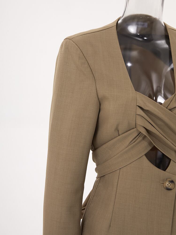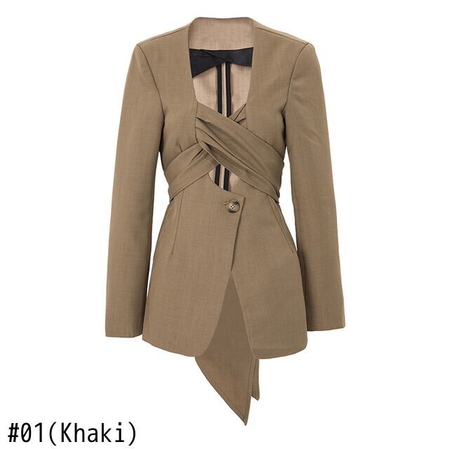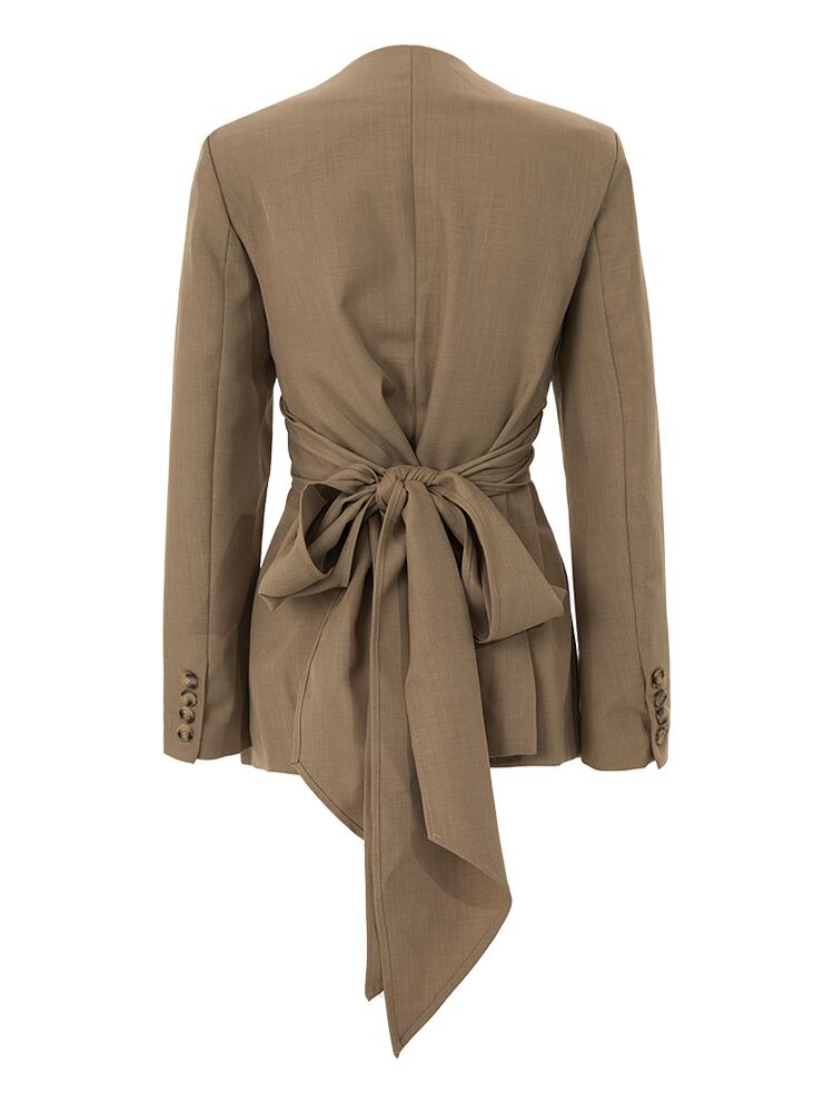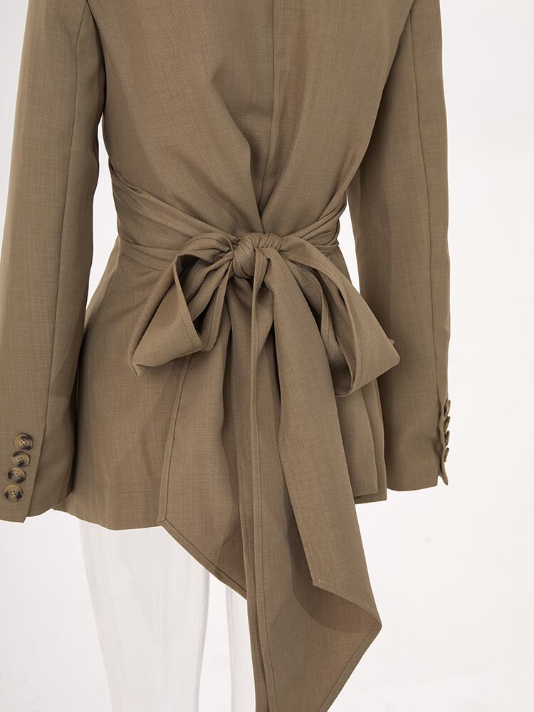 [EWQ] カーキバック包帯ボウブレザーラペル長袖ルーズフィットジャケット潮春秋 1DD360704 ロング リボン スプリング 春物 オータム 秋物