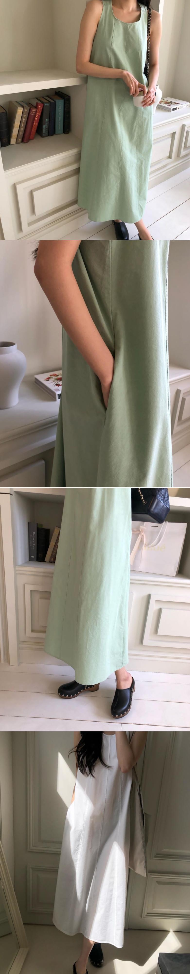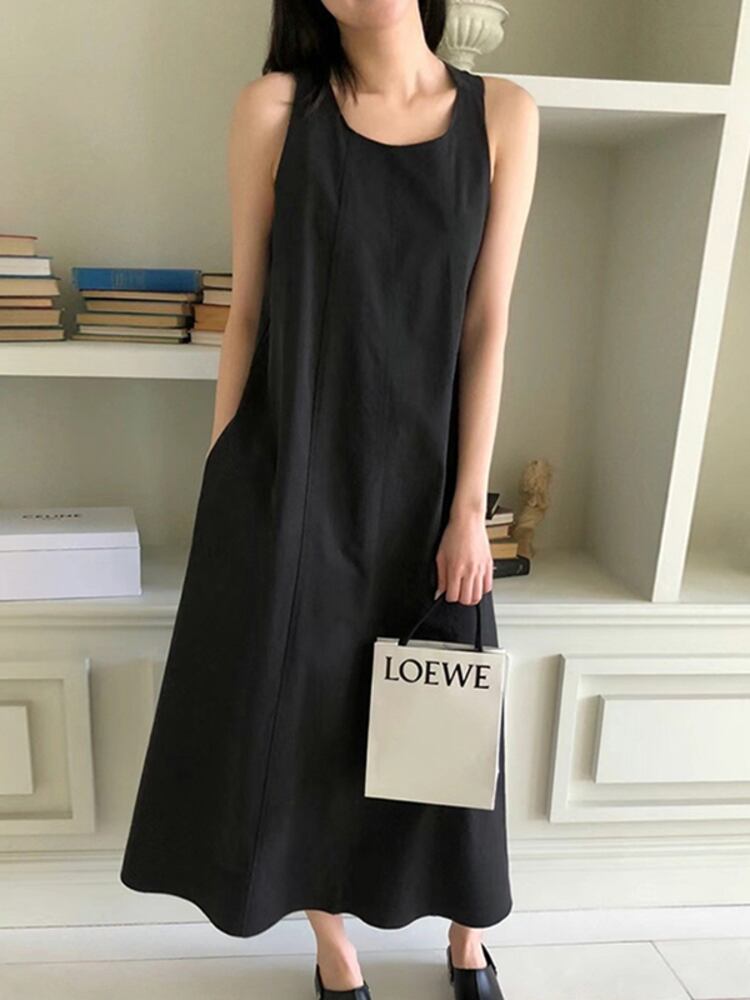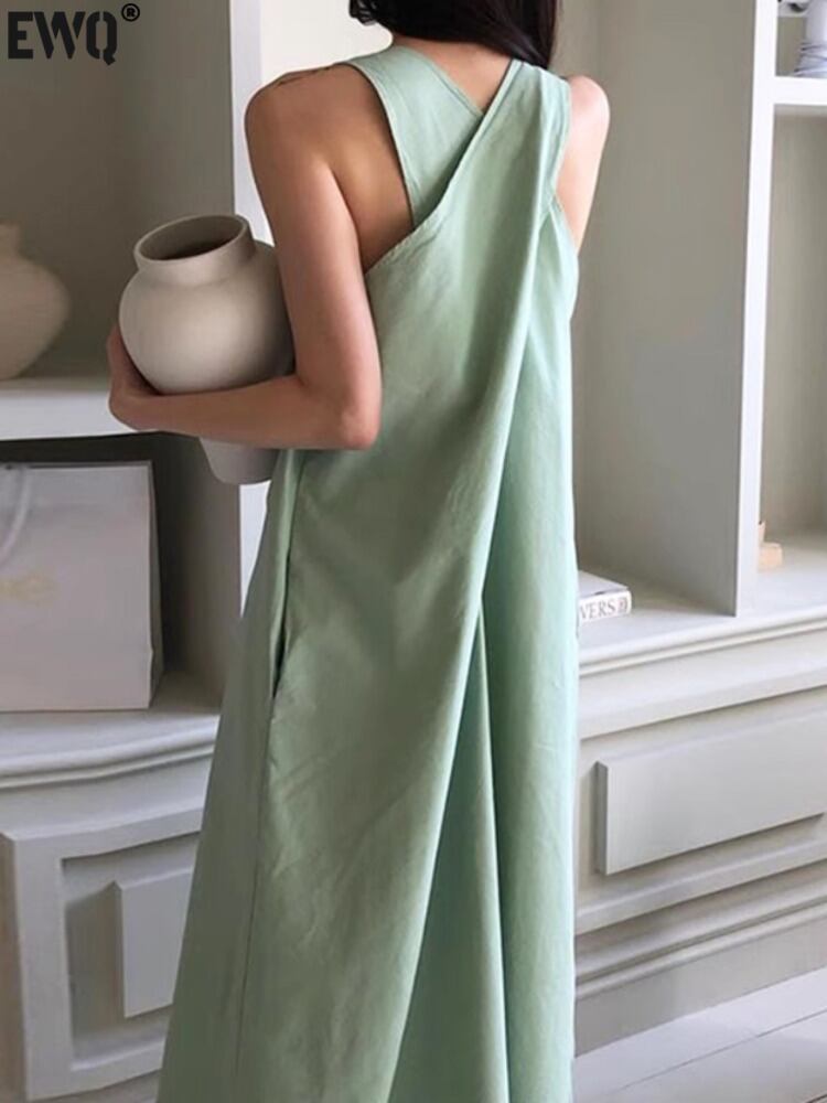 [EWQ] バックレスクロスルーズドレスルーズカジュアルポケットノースリーブベストドレス夏潮 Vestido 9600 サマー 夏物
