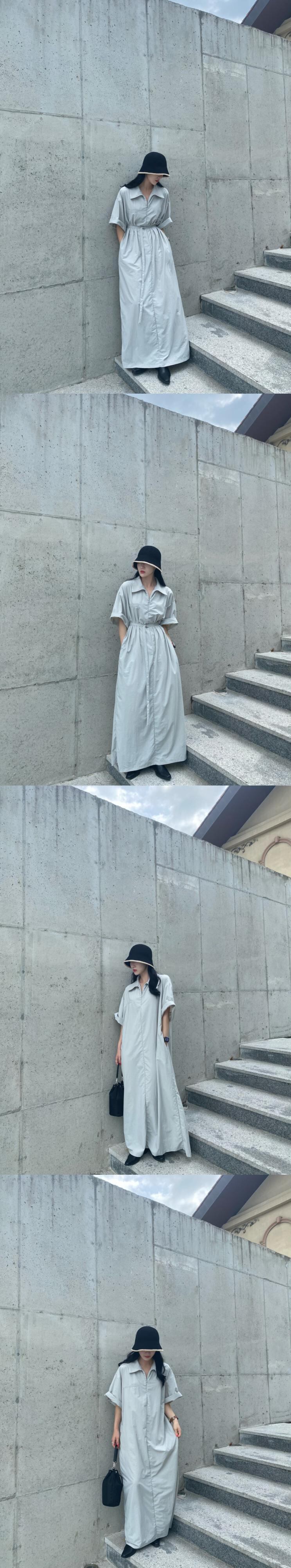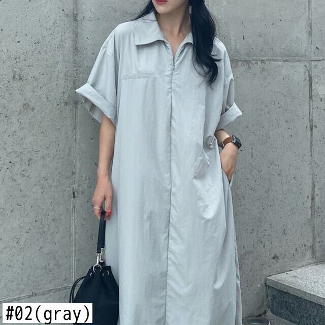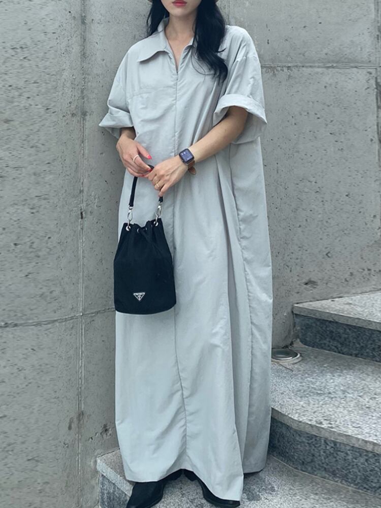 [EWQ] シンプルジッパーシャツドレスソリッドカラールーズ因果半袖ミディドレス夏潮 Vestido 293 ショート ハーフスリーブ サマー 夏物
