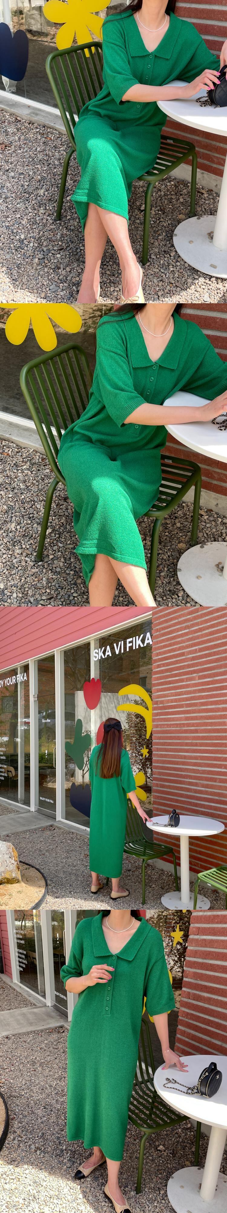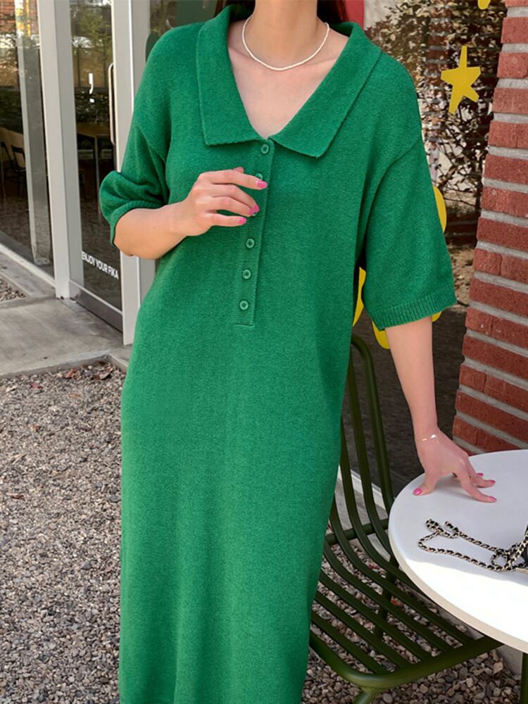 [EWQ] シックボタンラペルニットドレス半袖因果ロングドレス夏潮グリーン Vestido 16Y8987 ショート ハーフスリーブ サマー 夏物