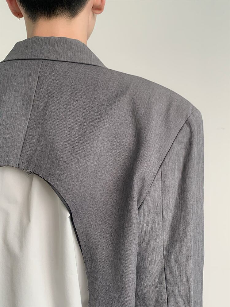 [EWQ] パッチワーク ブレザー コート 長袖 フェイク ツーピース スーツ ジャケット 春秋潮 2 ボタン ブレザー 16Y9139 ロング スプリング 春物 オータム 秋物