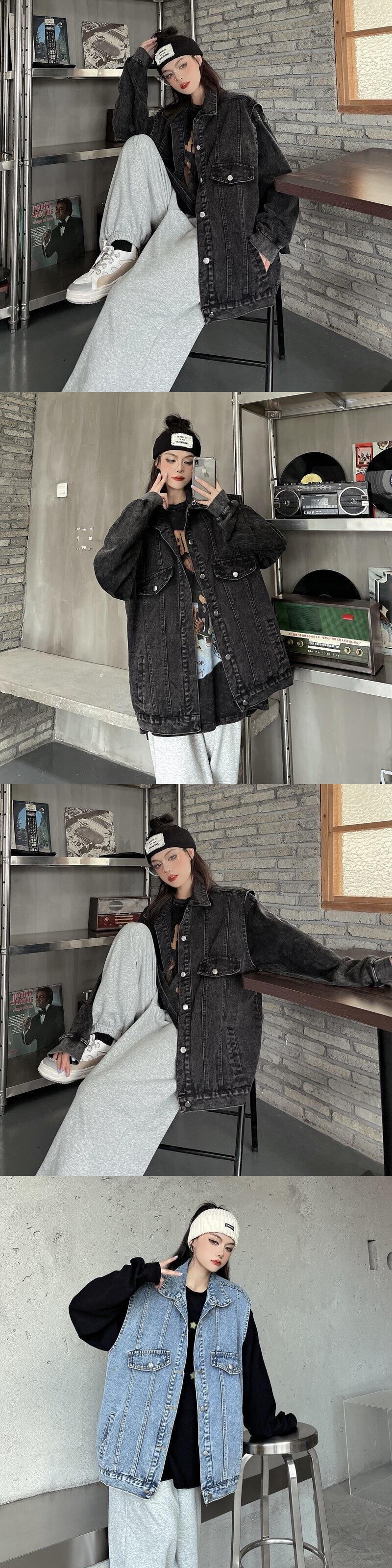 [EWQ] デニムベストストリートシングルブレストノースリーブジャケット夏潮ポケット生き抜くチョッキ 9467 サマー 夏物