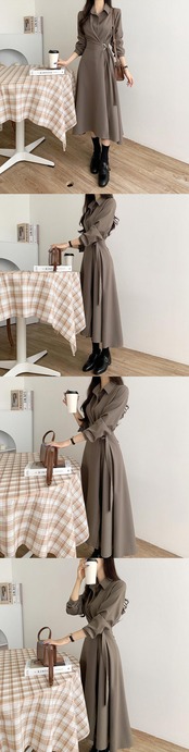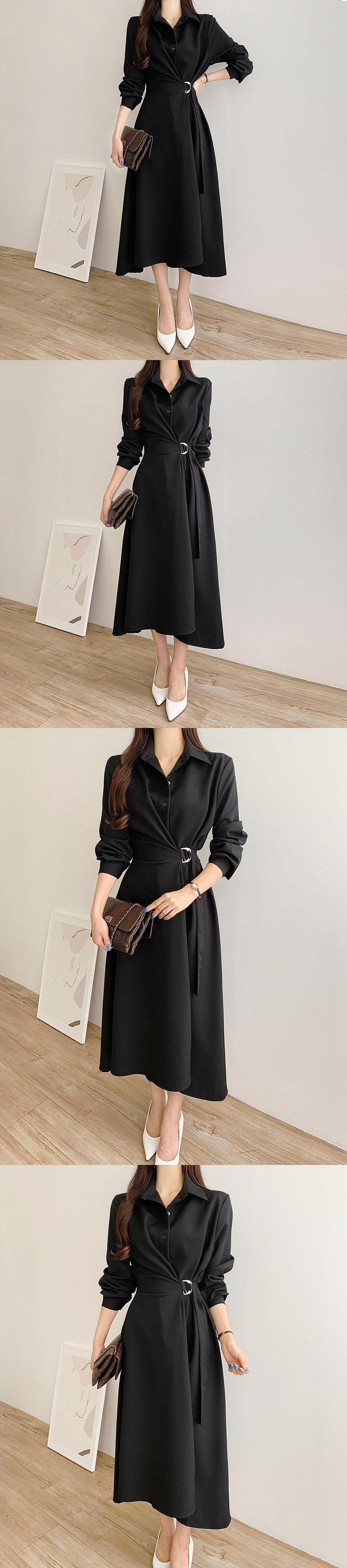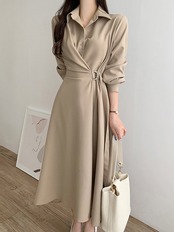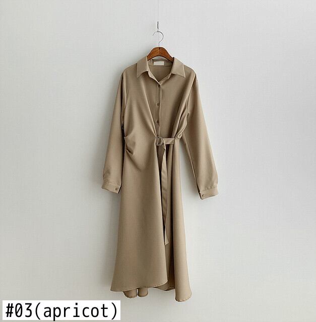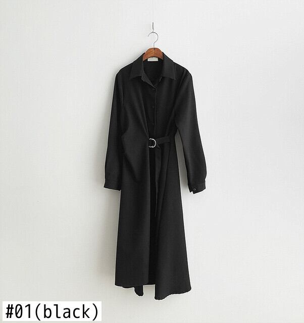 [EWQ] シングルブレストサイドレースアップシャツドレス長袖ソリッドカラードレス春秋 Vestido 8083 ロング スプリング 春物 オータム 秋物