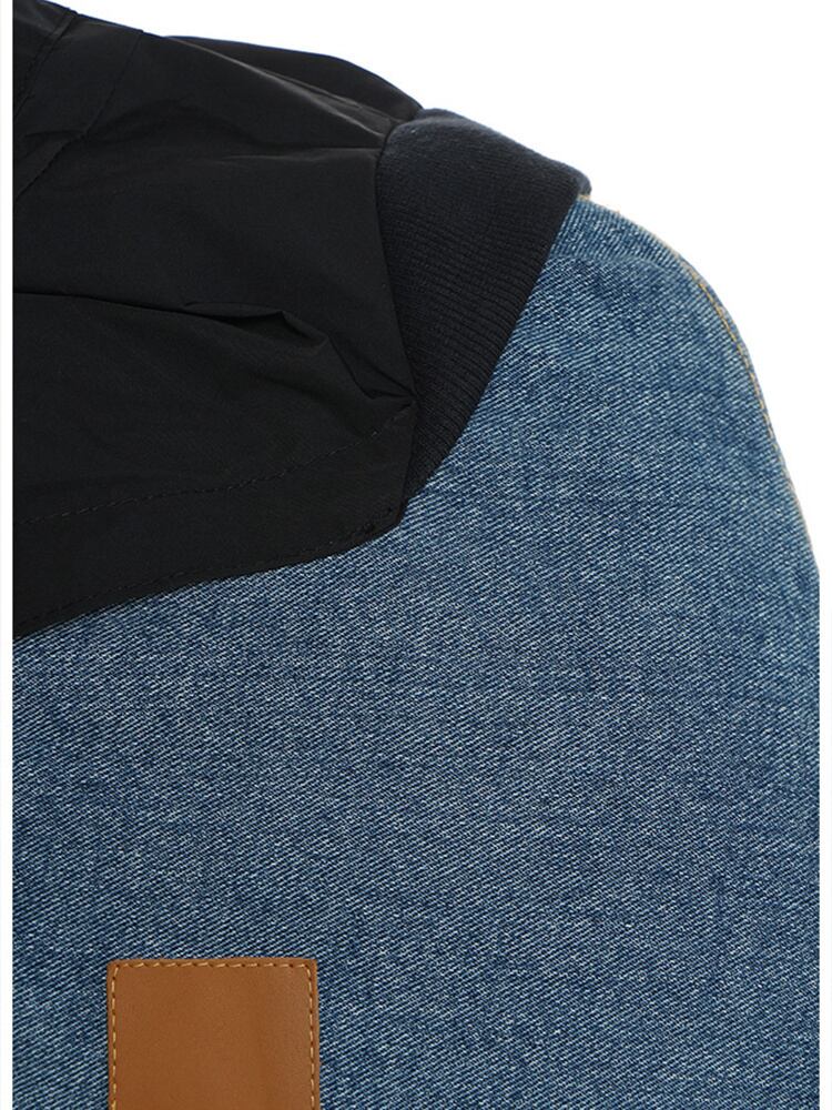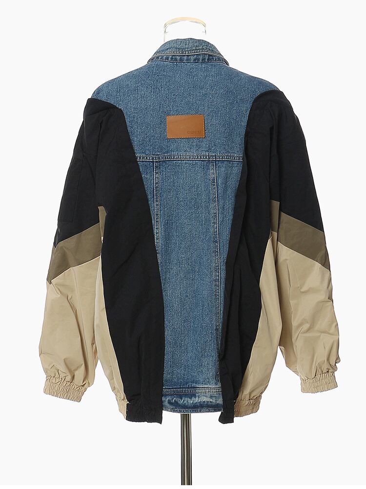[EWQ] ルーズフィットブルーデニムカラーブロックビッグサイズジャケットラペル長袖レディースコート潮春秋アウター ロング スプリング 春物 オータム 秋物
