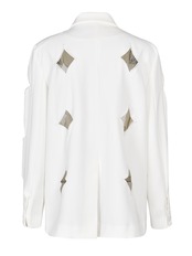[EWQ] シック白中空アウトビッグサイズブレザー長袖コートルーズフィットジャケット潮春秋 ロング ホワイト スプリング 春物 オータム 秋物