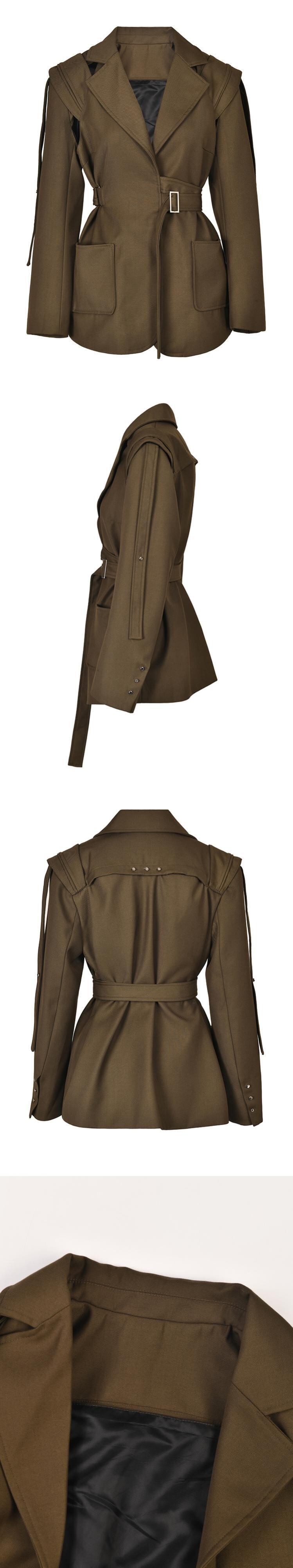 [EWQ] シックブラウンビッグサイズベルト付きリボンブレザー長袖ルーズフィットジャケット潮コート秋春 ロング スプリング 春物 オータム 秋物 ハーネス
