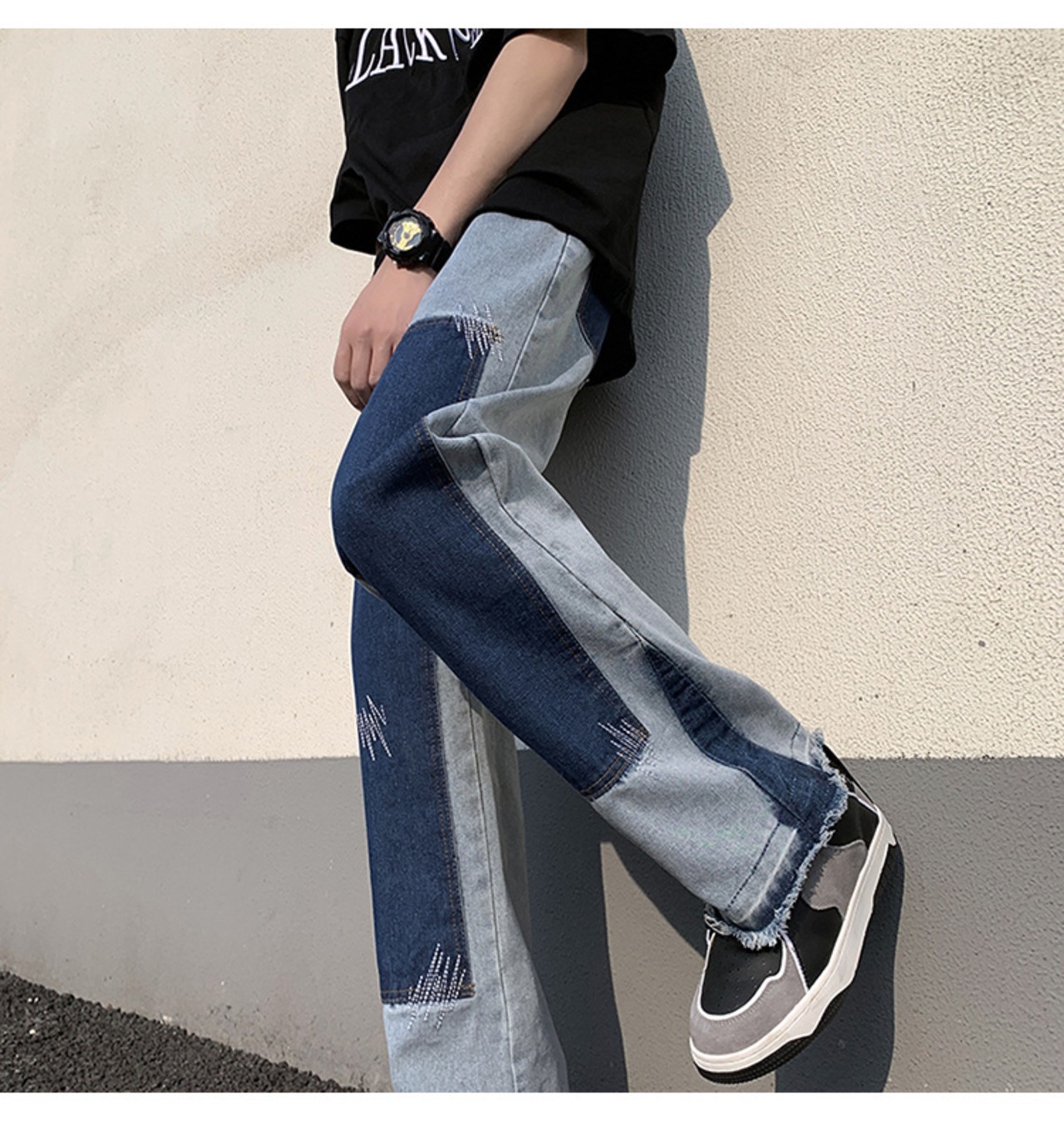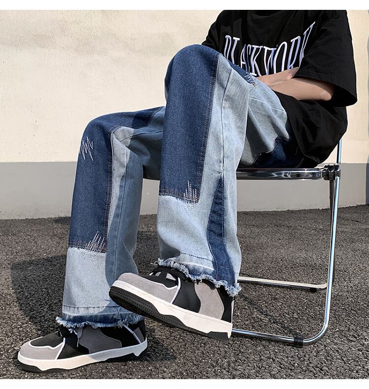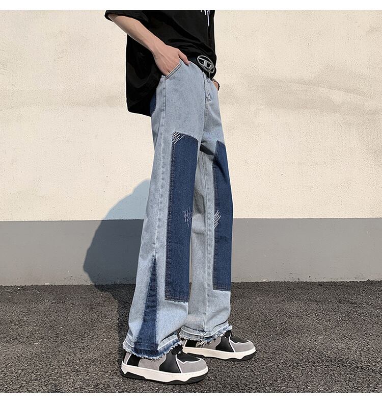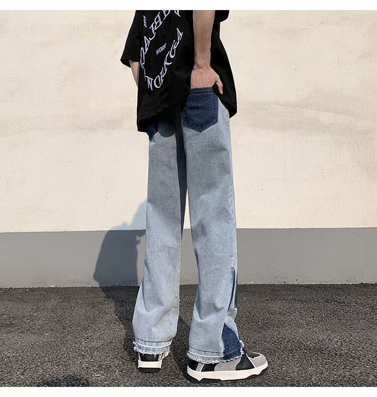 [EWQ] コントラストカラーパッチワークジーンズ夏潮ウエストブルーポケットストリートデニムパンツ 6Y9347 サマー 夏物