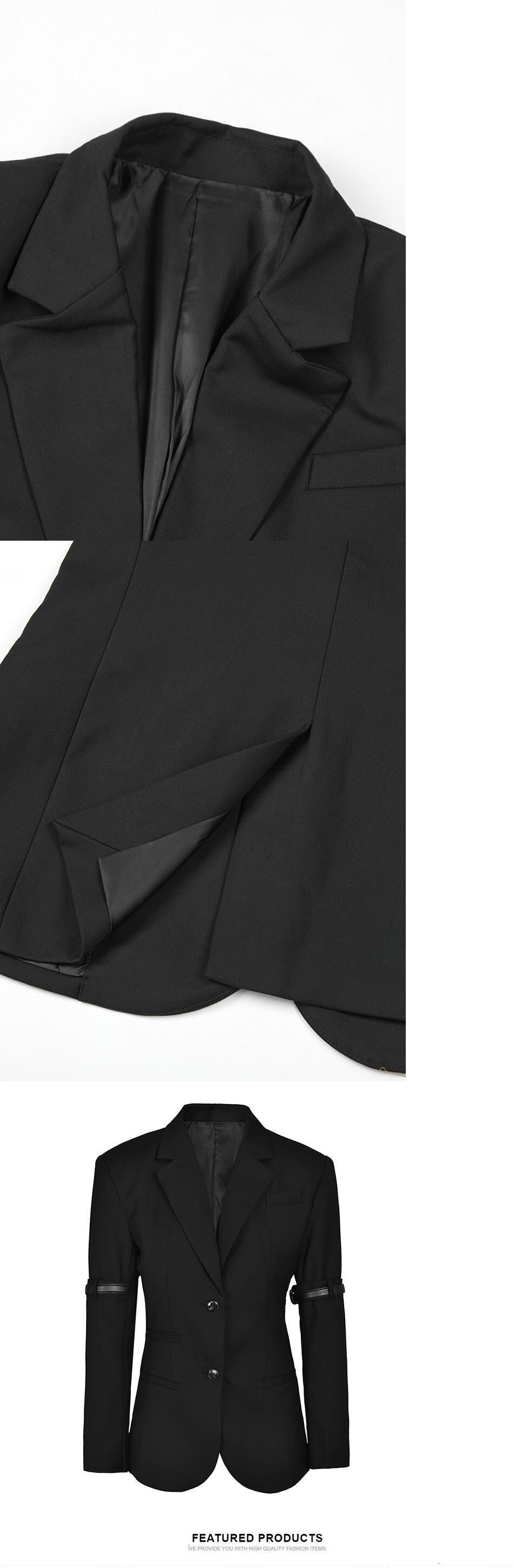 [EWQ] PU レザーバックルスプライシングブレザーコート黒長袖 2 ボタンスーツジャケット夏潮 8237 ロング ブラック サマー 夏物