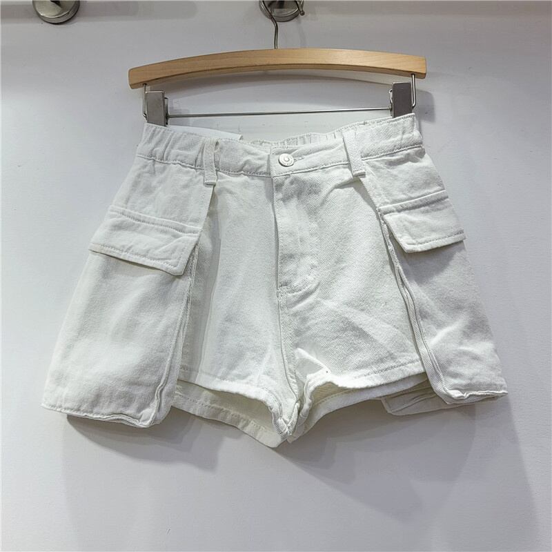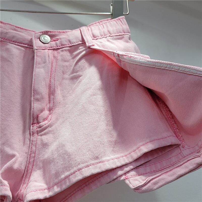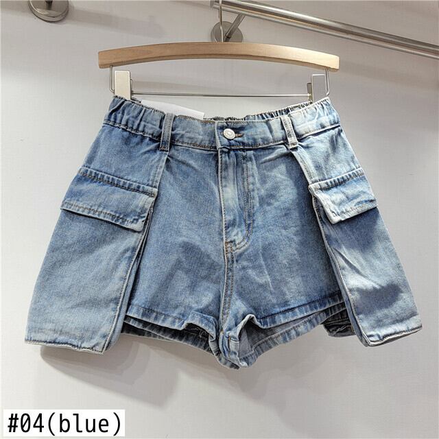 [EWQ] ピンクポケット非対称デニムショートパンツ無駄 1 ボタンストリートホットショートジーンズ夏潮 サマー 夏物 ショーツ ブルマー