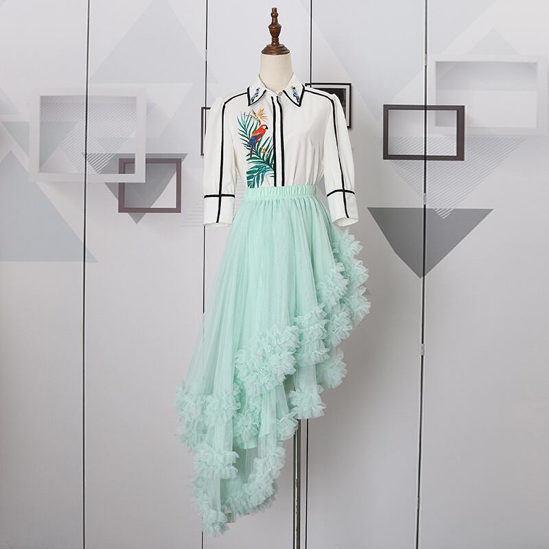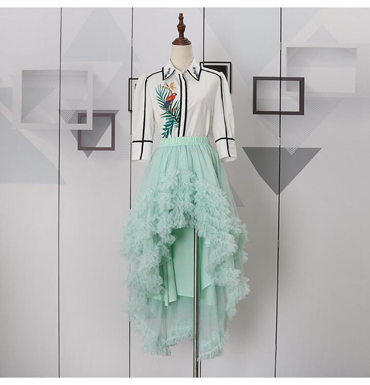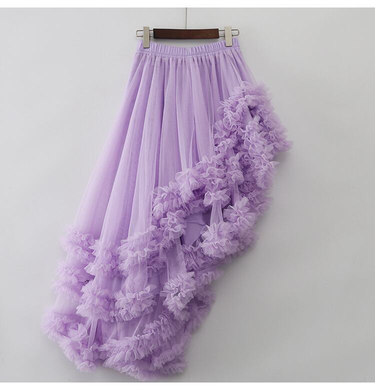 [EWQ] ガーゼスカート不規則フリルスプライスウエスト無地気質 A ラインメッシュスカート夏 サマー 夏物 Aライン ソリッドカラー