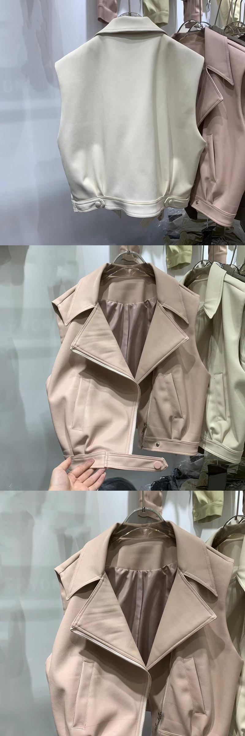 [EWQ] ショート PU レザーベストストリート包帯ジッパーノースリーブジャケット夏潮チョッキ 6Y9397 サマー 夏物