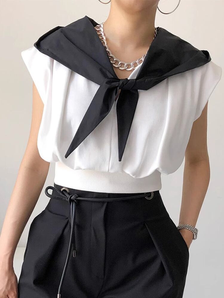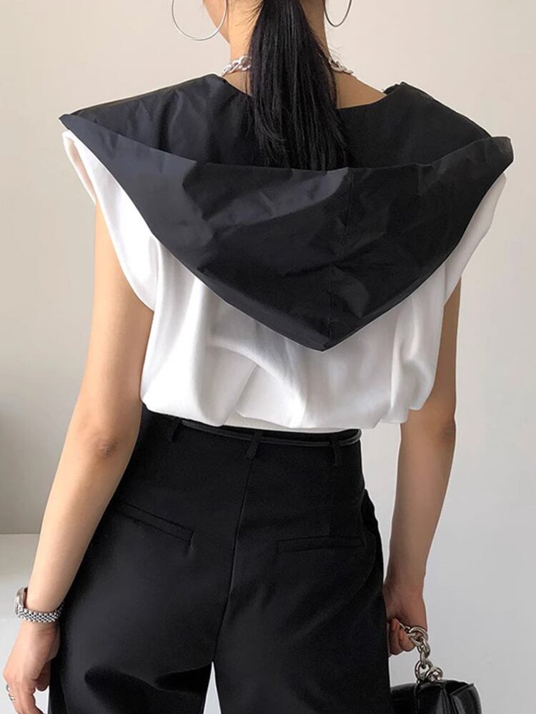 [EWQ] フード付きコントラスト Tシャツ夏潮 V ネックパッチワーク半袖因果 Tシャツトップ T シャツ 16Y9593 ショート ハーフスリーブ サマー 夏物 Vネック