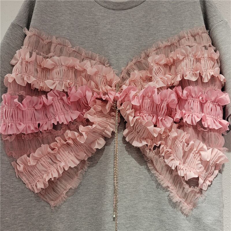 [EWQ] Tシャツビーズチェーンメッシュスプライス蝶ネクタイコントラスト Tシャツトップス夏潮ルーズ Tシャツ リボン サマー 夏物