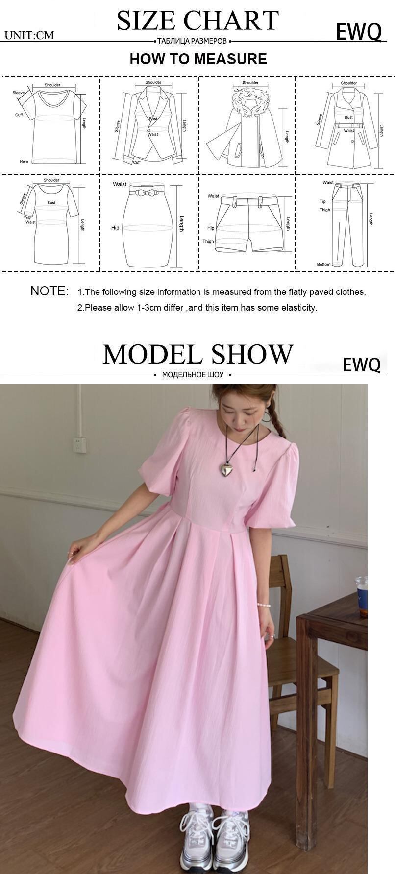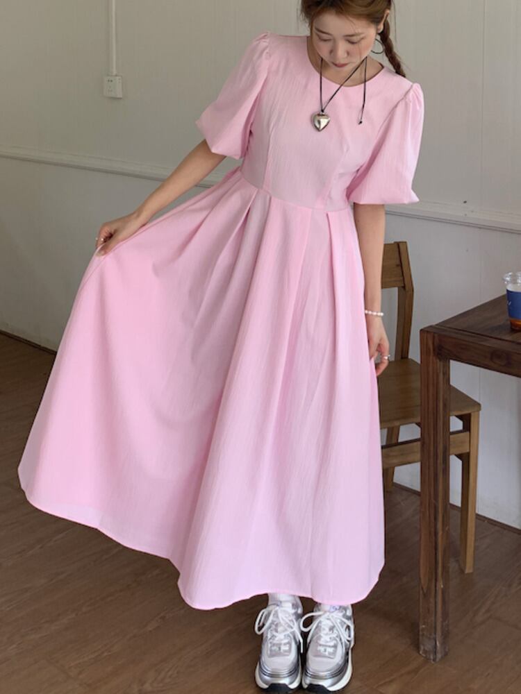 [EWQ] バックレースアップボウドレス甘い気質プリーツウエストバブルスリーブドレス夏潮 Vestidos リボン 大人ガーリー スウィート キュート カジュアル サマー 夏物
