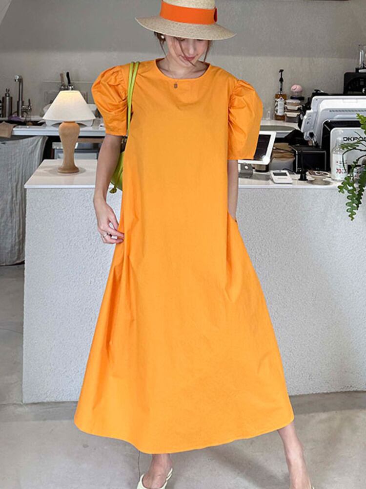 [EWQ] シンプル白いドレス夏ルーズバブルスリーブ A ラインドレス潮ポケット Vestido 329 ホワイト サマー 夏物 Aライン