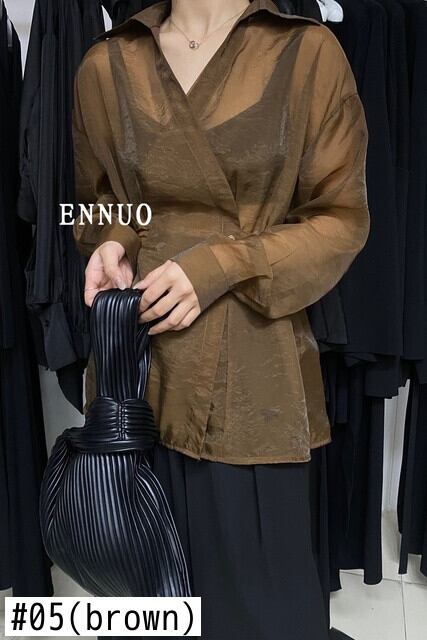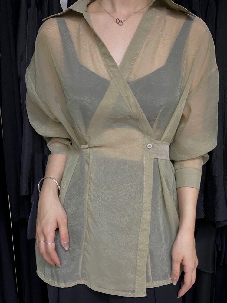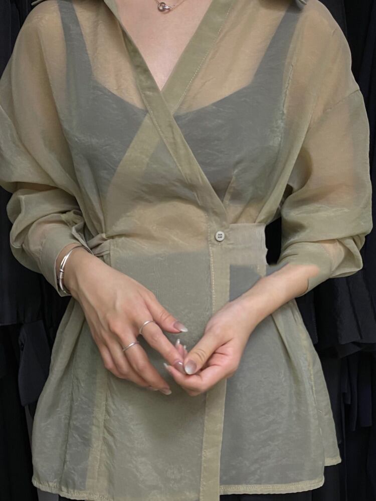 [EWQ] 包帯透視シャツ長袖 V ネッククロス薄手夏潮トップ U294 ロング サマー 夏物 Vネック