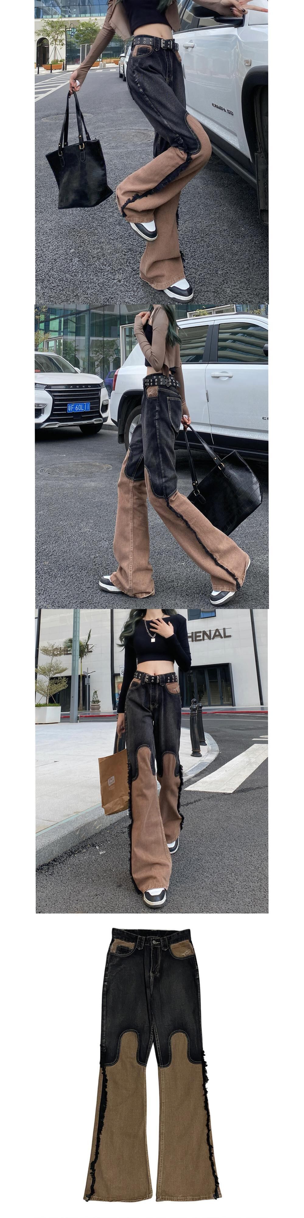 [EWQ] ジーンズパッチワークウエストデニムパンツ春夏潮ストリートテルワイドレッグパンツ Y8890 スプリング 春物 サマー 夏物 ワイドパンツ