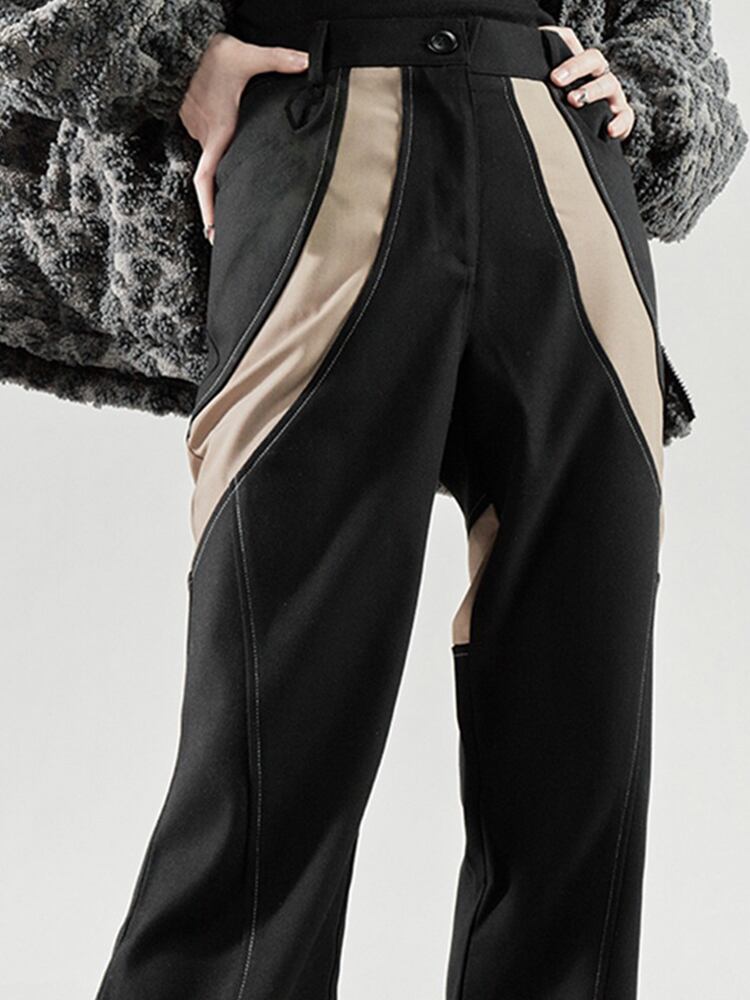 [EWQ] ストリートストレートパンツパッチワークストライプコントラストカラーウエストポケットスーツパンツ夏 サマー 夏物