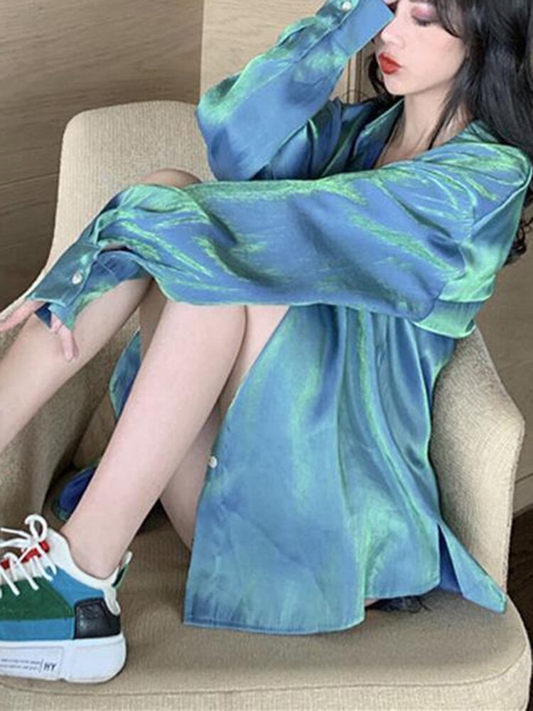 [EWQ] 蛍光ブルービッグサイズシャツ長袖夏潮美しい服シングルブレスト ロング サマー 夏物