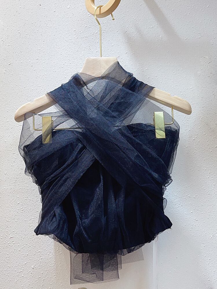 [EWQ] 甘いメッシュホルターベストセクシーピンク服オフショルダー夏潮キャミソールパッチワークタンクトップ 大人ガーリー スウィート キュート カジュアル サマー 夏物